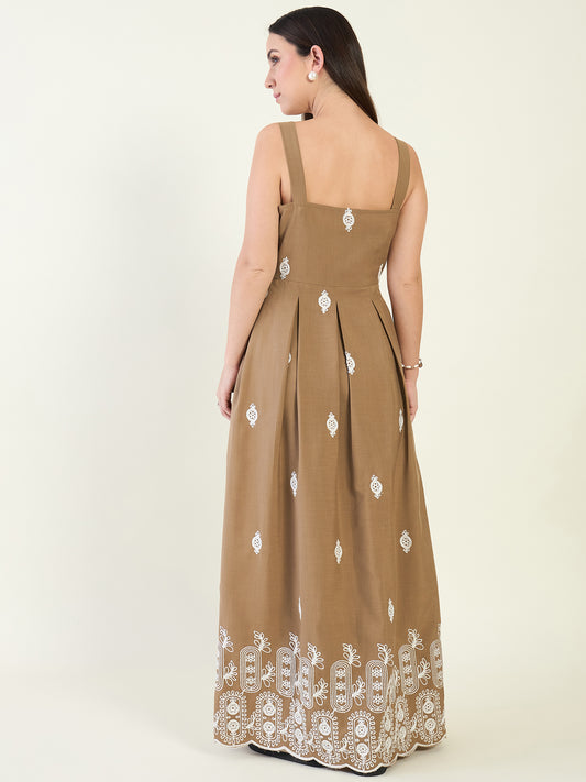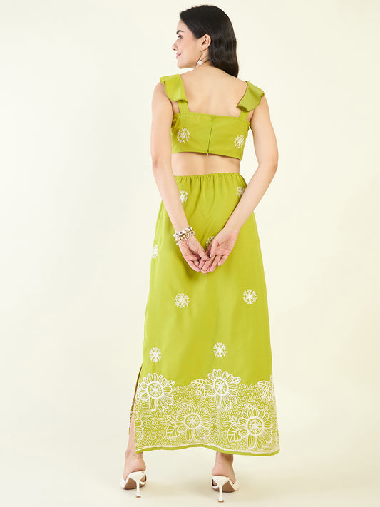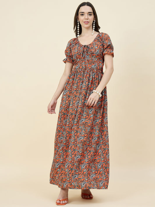Green Paisley Printed Maxi Dress with Tie-Ups