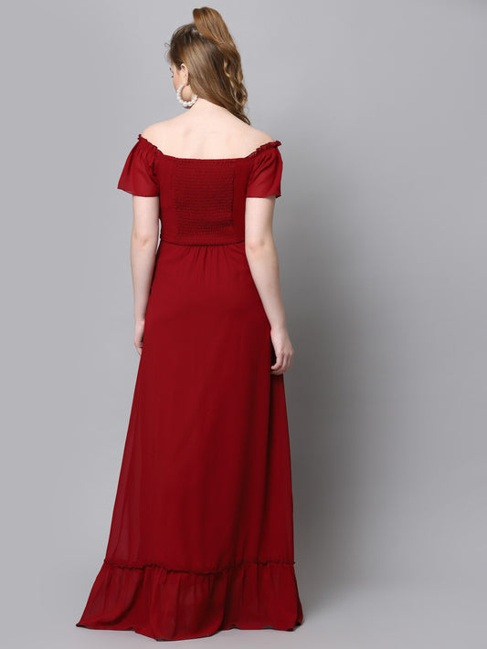 AAYU Women Georgette Solid Light Blue Maxi Dress
