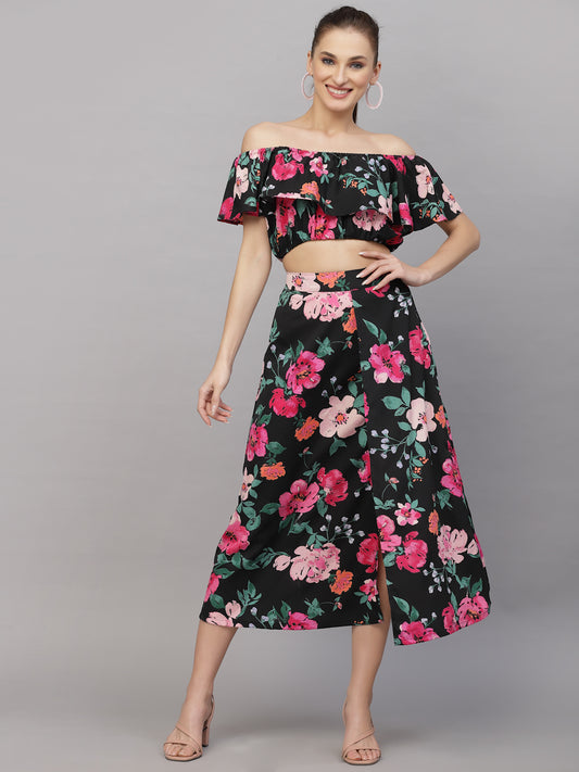 Textured Knit Crop Top and Slit Skirt Set