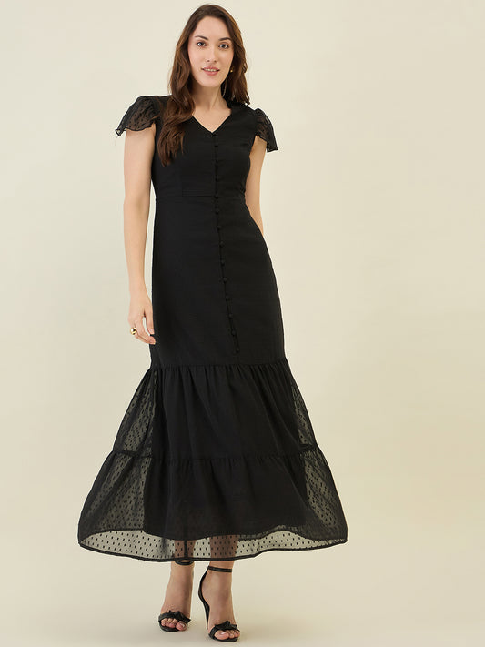 Dobby Mesh Tiered Maxi Dress with Cape Sleeves