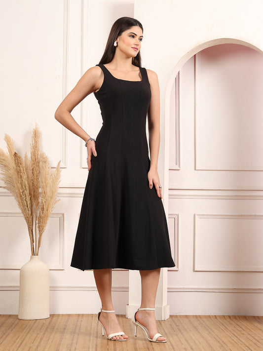 Sleeveless Square Neck A-Line Midi Dress