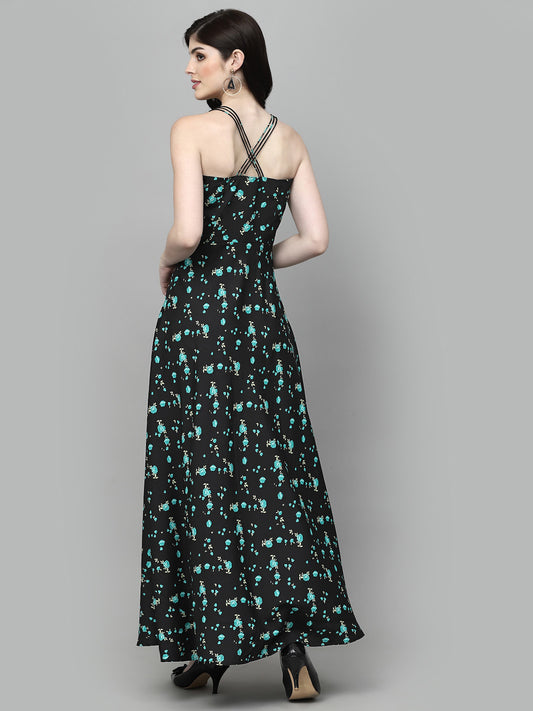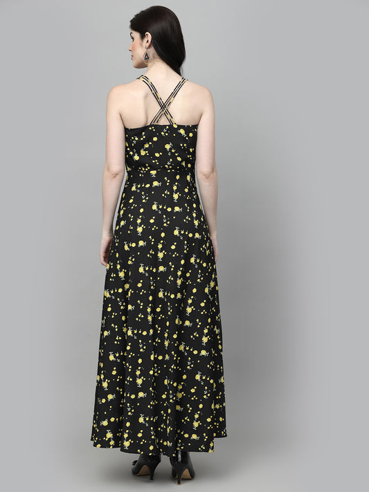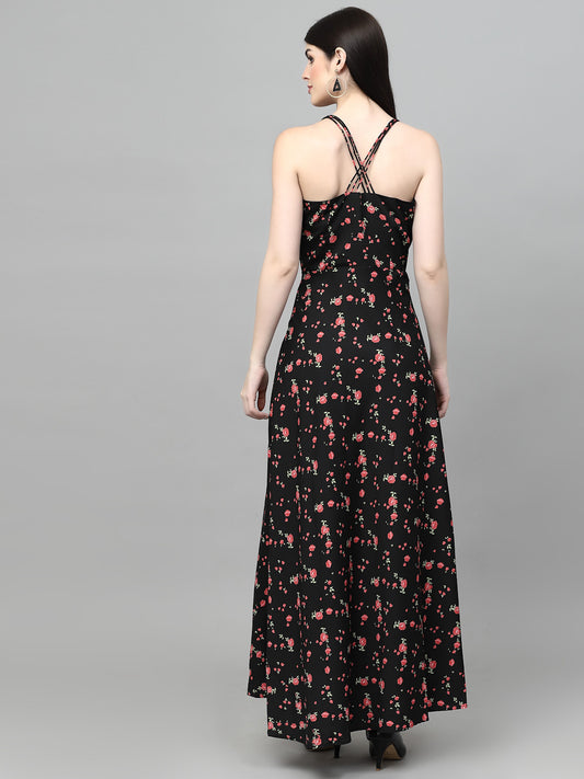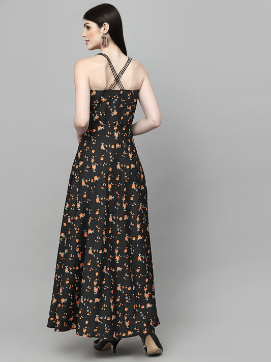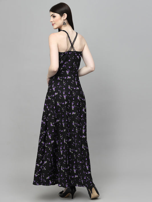 Noir Ruffle Off-Shoulder Maxi Dress in Chiffon