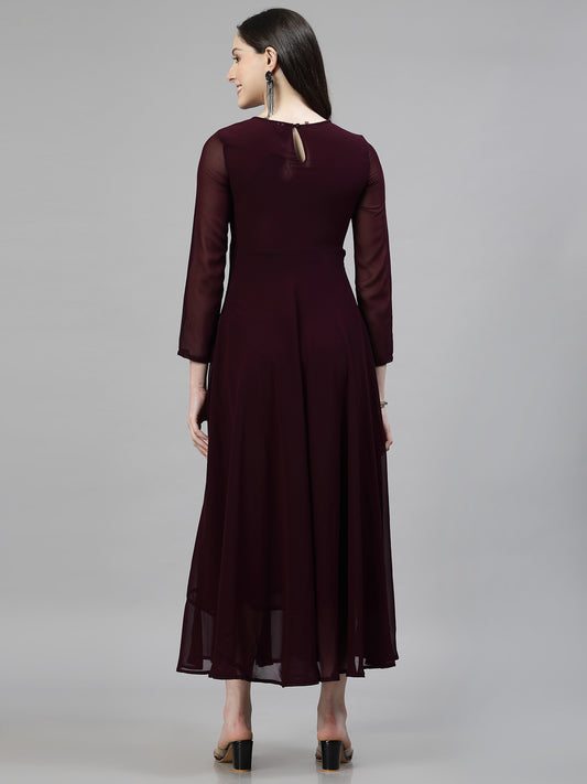 AAYU Women Fit and Flare Wine Color Solid Dress
