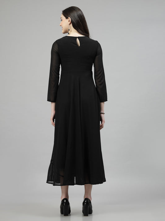 AAYU Women Fit and Flare Black Solid Dress