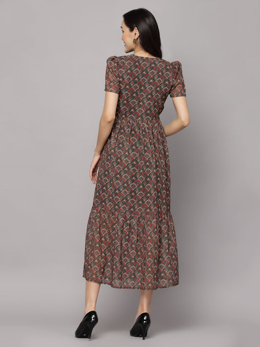 AAYU Women Fit and Flare Brown Dress