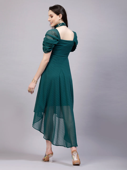AAYU Women Asymmetric High Low Green Solid Dress