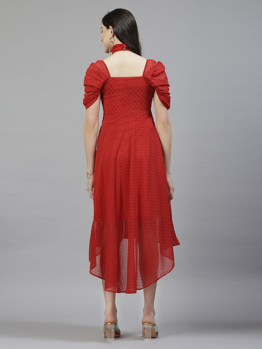 AAYU Women Asymmetric High Low Red Solid Dress