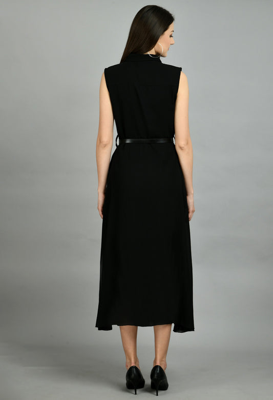 AAYU Women Asymmetric High Low Black Solid Dress
