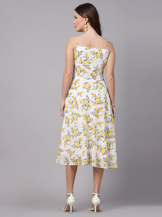 AAYU Women Fit & Flare White & Yellow Printed Dress