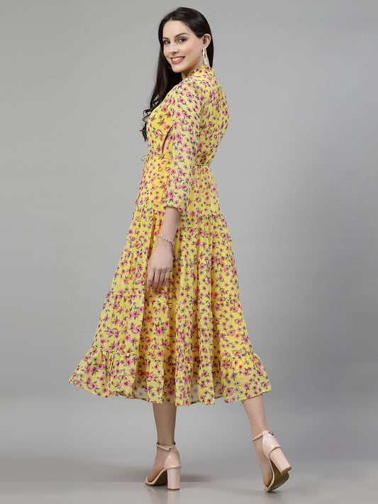 AAYU Women Printed Tiered Yellow Dress