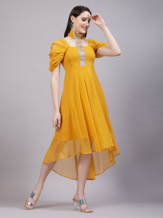 AAYU Women Asymmetric High Low Mustard Solid Dress