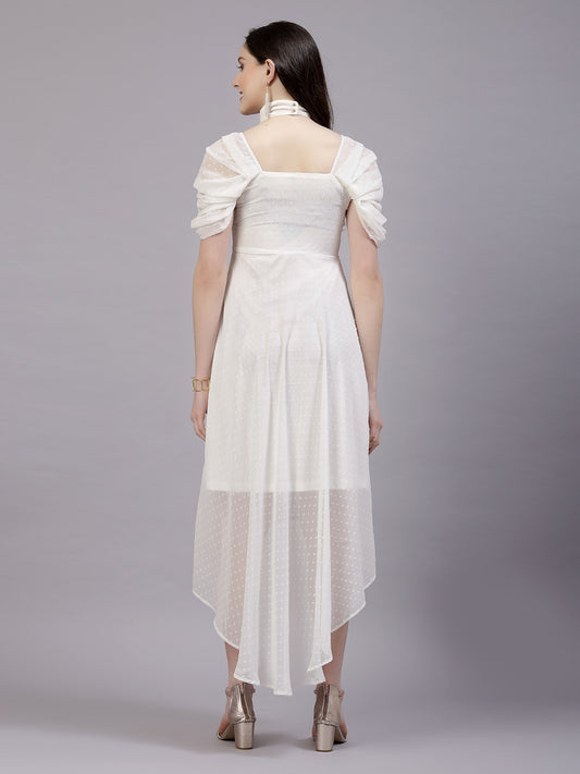 AAYU Women Asymmetric High Low White Solid Dress