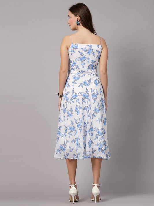 AAYU Women Fit & Flare White & Blue Printed Dress