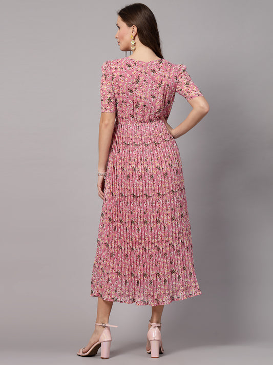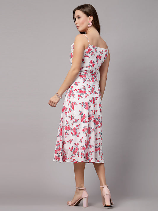 AAYU Women Fit & Flare White & Pink Printed Dress