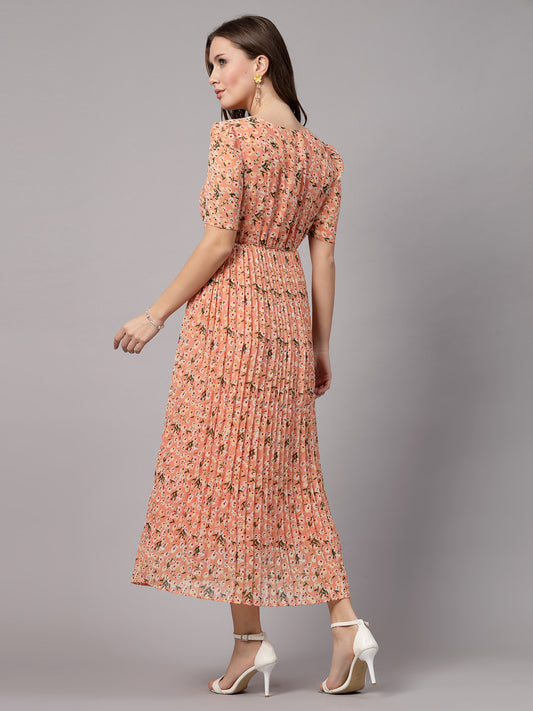 AAYU Women Fit and Flare Puff Sleeve Printed Dress