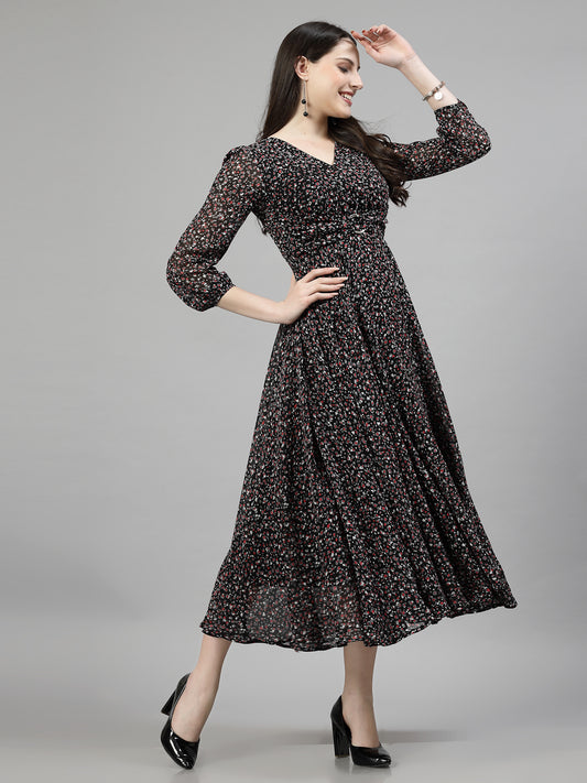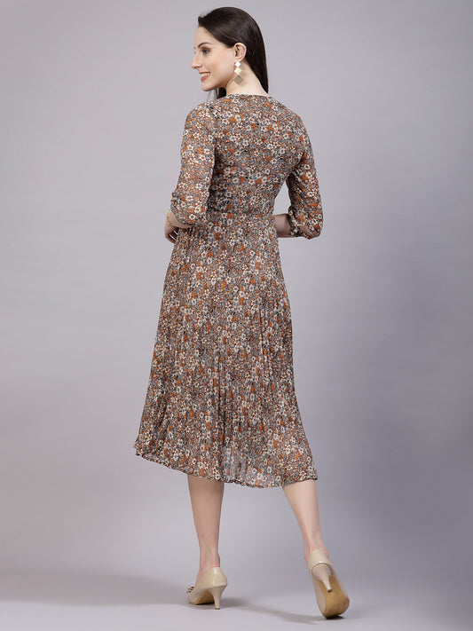 AAYU Women Fit and Flare Cuff Sleeve Printed Dress