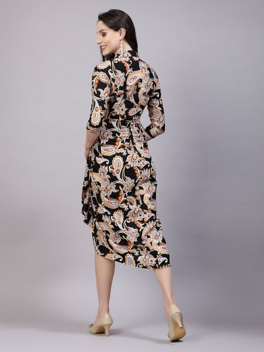 AAYU Women Printed Shirt Collar Dhoti Styled Midi Dress - START