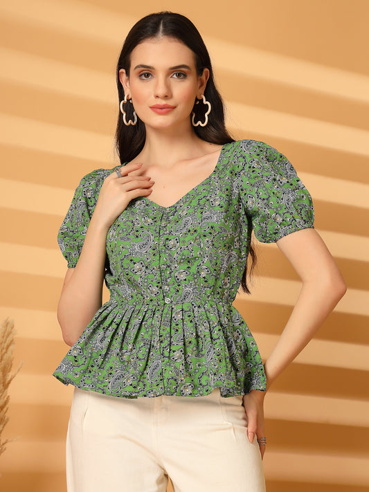 Floral Print Tie Front Crop Top with Puff Sleeves