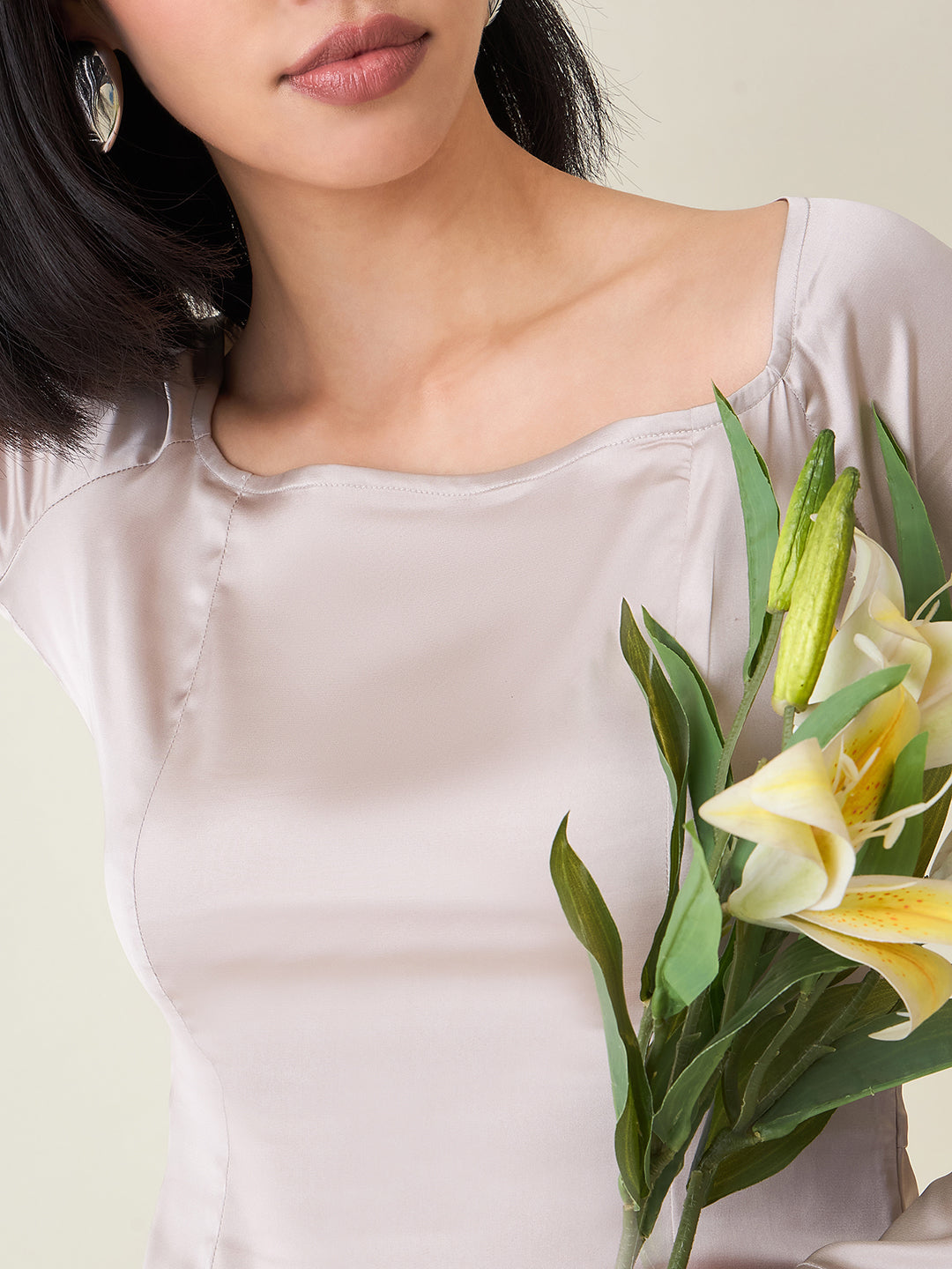 This stunning black satin A-line mini dress by AAYU Creation showcases a stylish square neckline and full sleeves, giving it a modern and classy appeal. Made from premium satin fabric, it offers a soft and comfortable feel. The above-knee length and side zip closure ensure a flattering fit, perfect for parties, casual outings, or special occasions. Easy to maintain with both machine and hand wash options, this western wear dress is a must-have for every fashionable woman who loves blending comfort with trend.