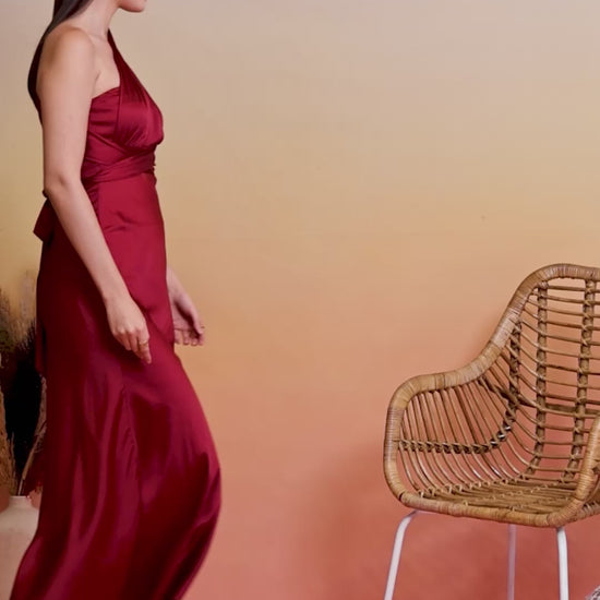 Step into timeless elegance with this AAYU Women Satin Flared Maxi Dress, crafted to make every moment feel special. Designed in a flowing maxi length, this dress features a flattering halter neckline and a softly flared silhouette that enhances your feminine charm. Made from smooth satin fabric, it offers a luxurious sheen and graceful drape for party, formal, or festive occasions. The sleeveless style and side zip closure ensure comfort and ease while adding a chic, modern touch. Available in multiple rich shades for versatile styling.
