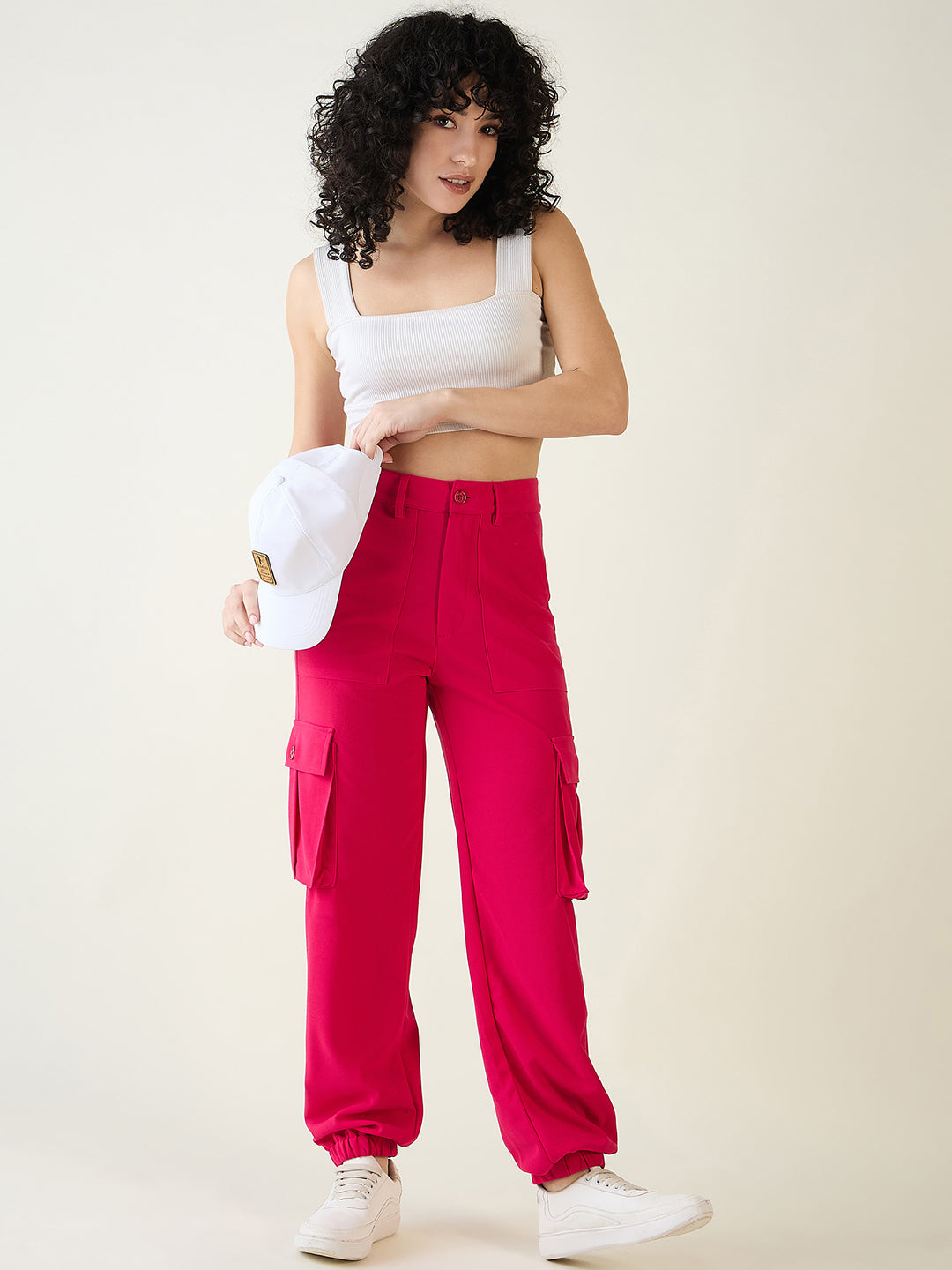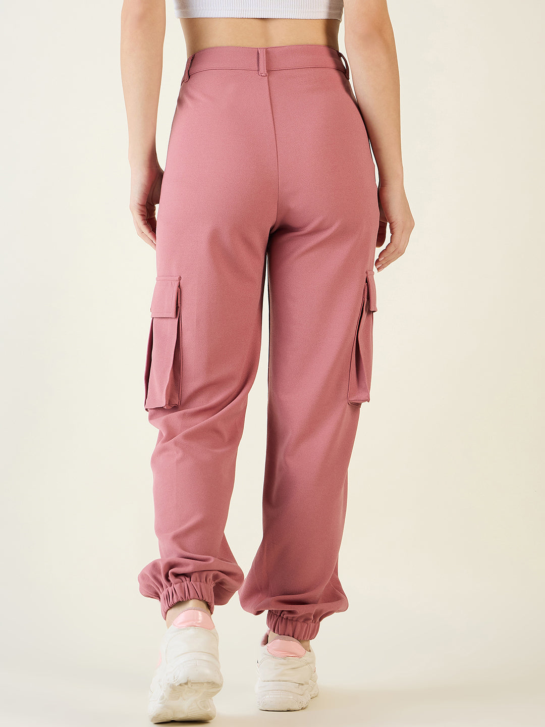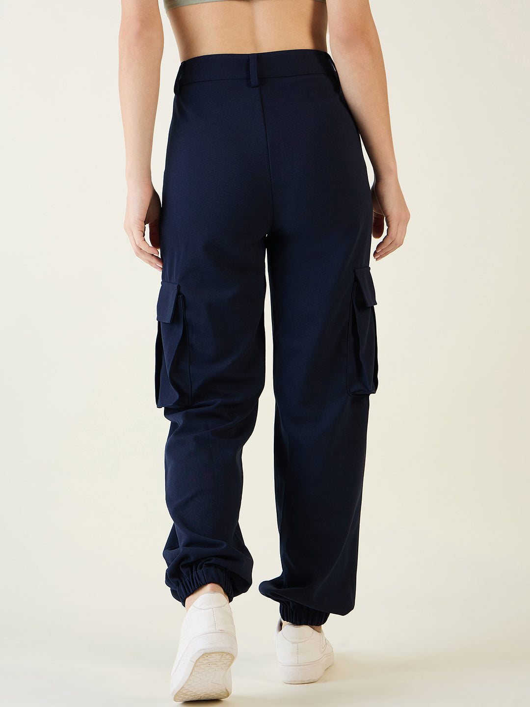 Step into street style with these modern cargo joggers. Crafted from comfortable Lycra Blend fabric, this style features an Elevated Waist with a button closure and trendy elastic cuffs. The design includes functional side flap pockets and decorative front pleats, offering a relaxed yet fashionable Regular Fit perfect for casual wear.