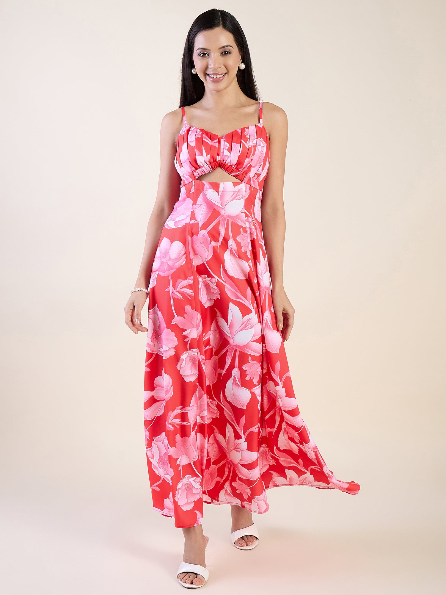 Make a vibrant statement in this elegant floor-length maxi dress. Designed with a flattering gathered bust and a subtle front cutout, the flowing silhouette creates effortless movement. The lightweight blend offers comfort and style, making it an ideal choice for sun-soaked afternoons.