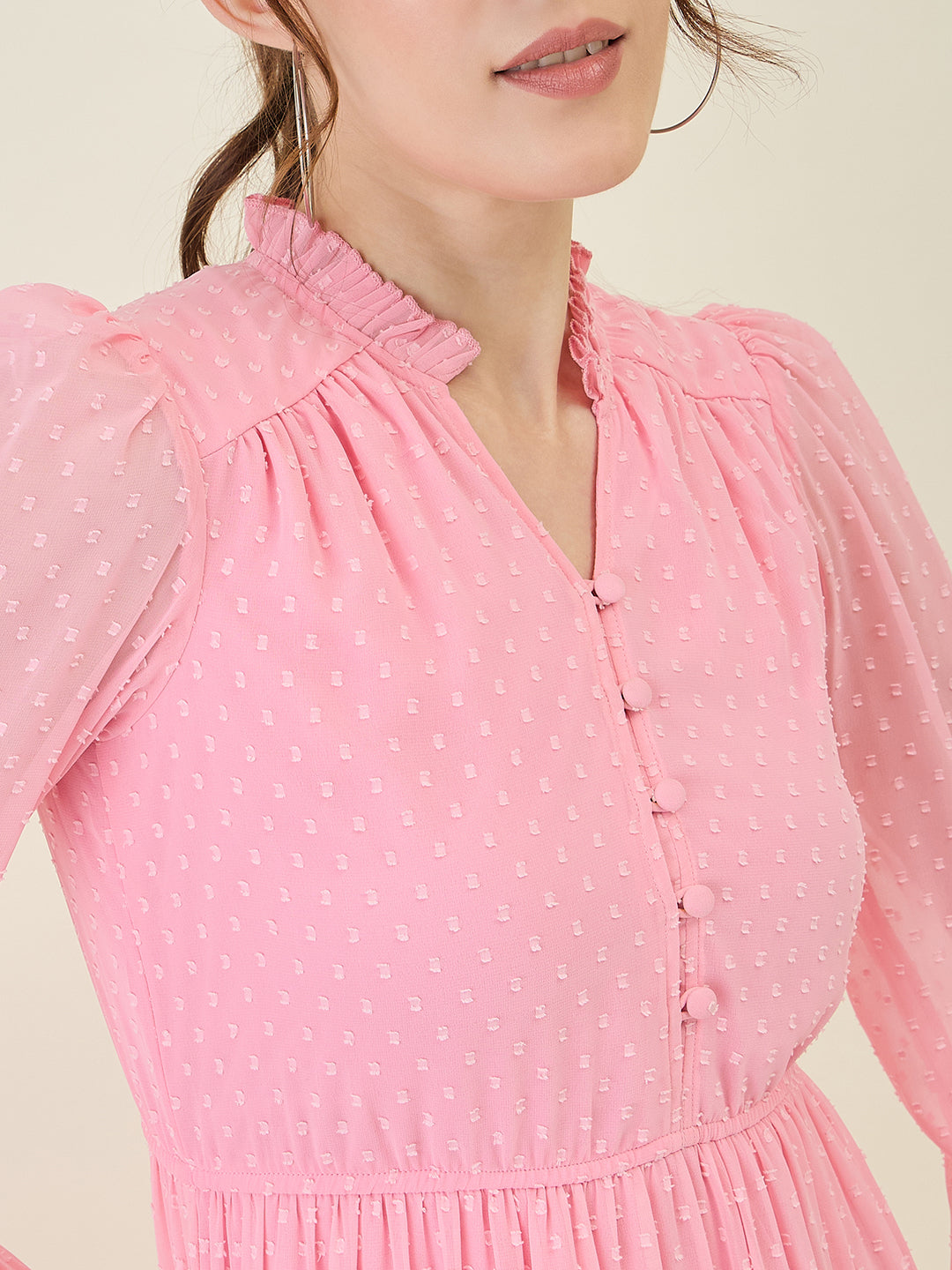 Long Sleeve Ruffled Maxi Dress with Button Detail