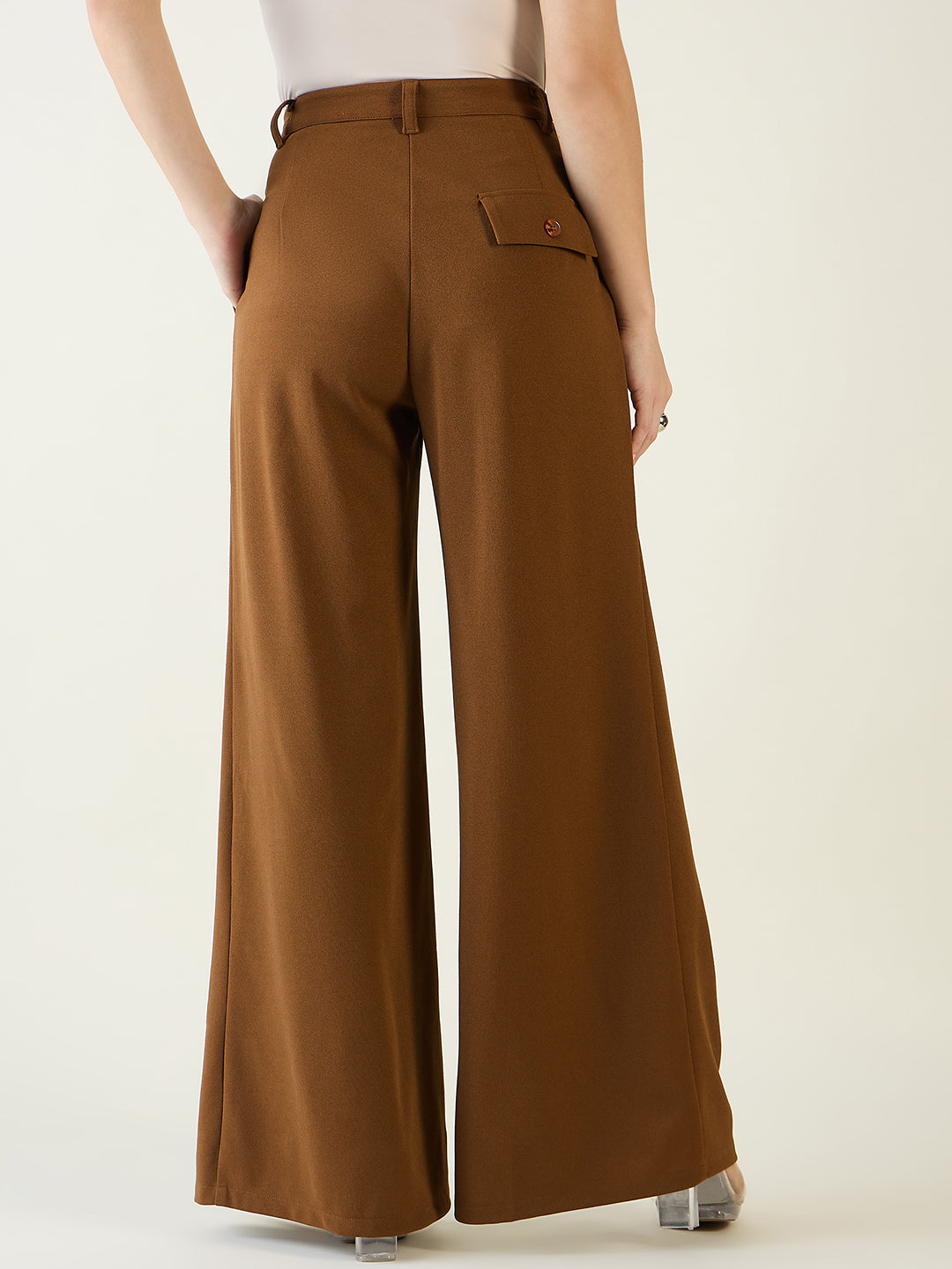 Step out in high style with these dramatic pleated palazzo trousers. Crafted from smooth Lycra Blend fabric, this full-length style features an Elevated Waist with belt loops and a flattering single pleat on each leg. The relaxed Comfort Fit and button closure create an elegant, flowing silhouette perfect for any upscale casual event.