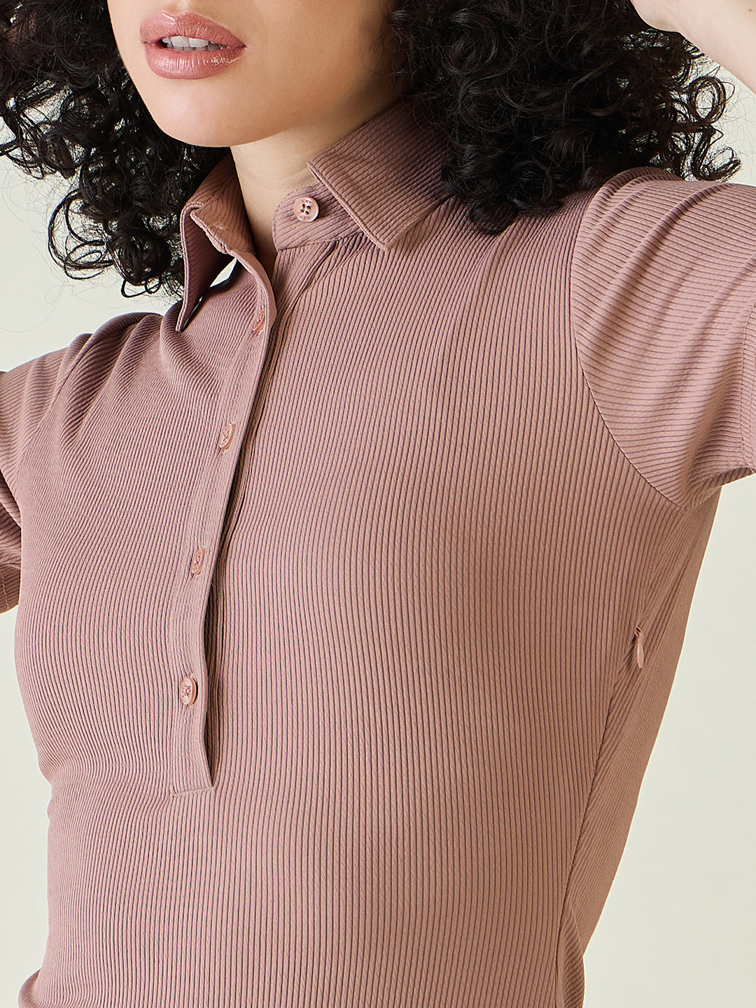 Rib Collared Neck Side Slit Bodycon Dress