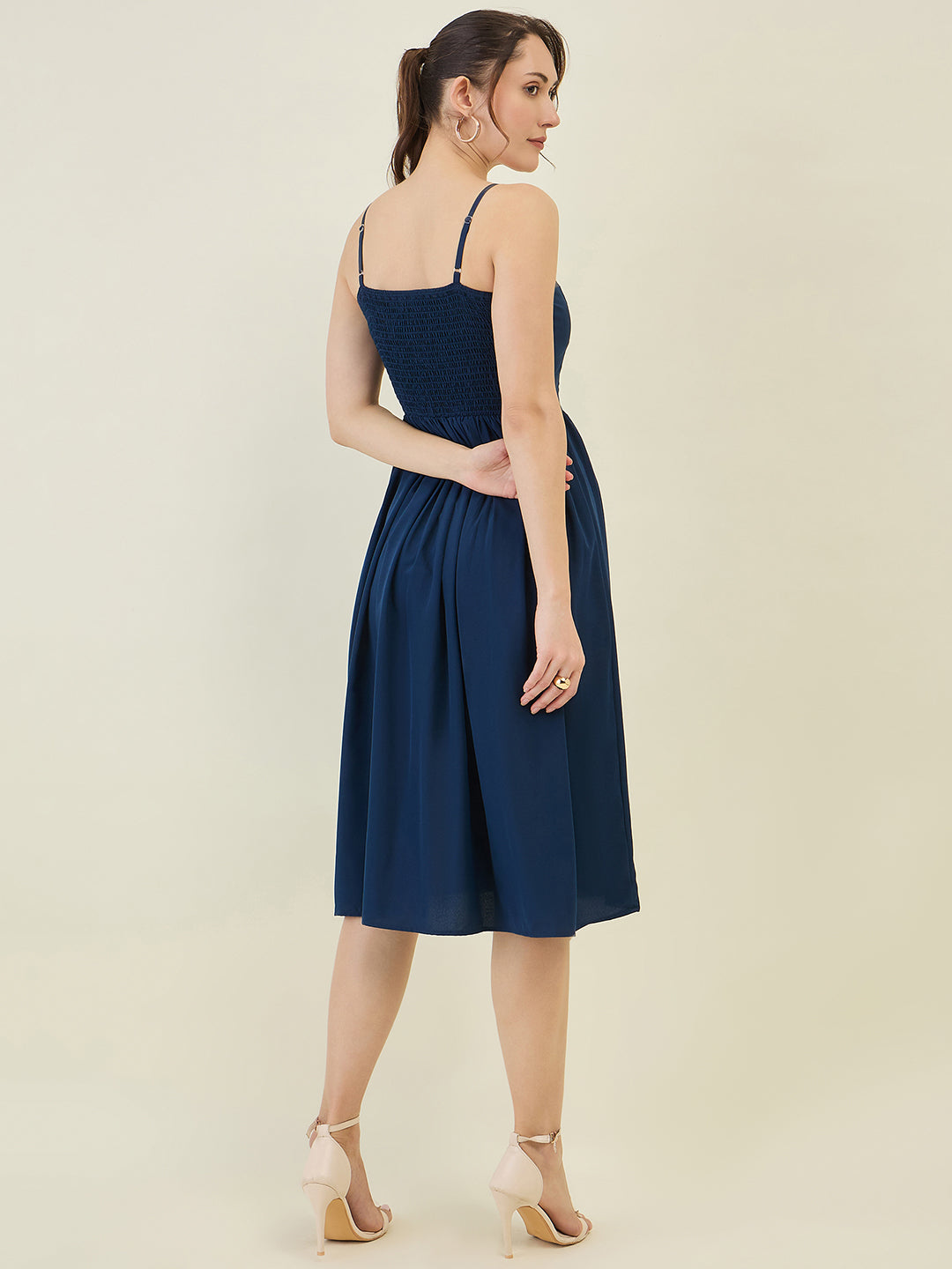 Smocked Strap Sleeveless Midi Fit & Flare Dress