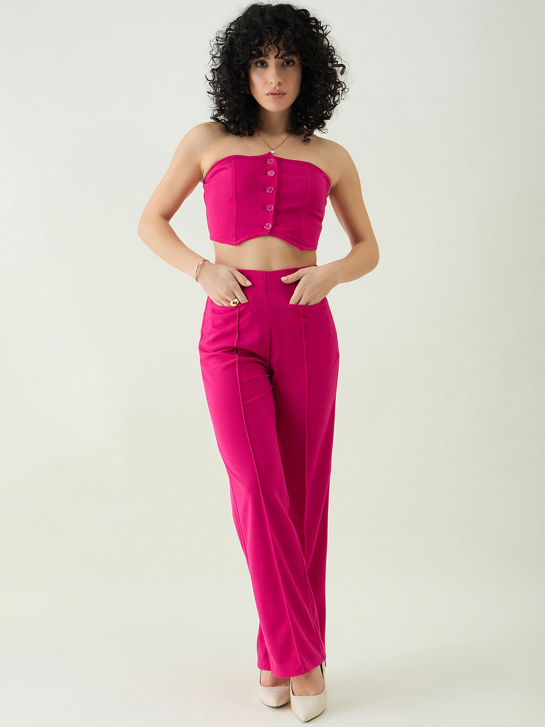 Strapless Button-Front Crop Top and Trousers Set