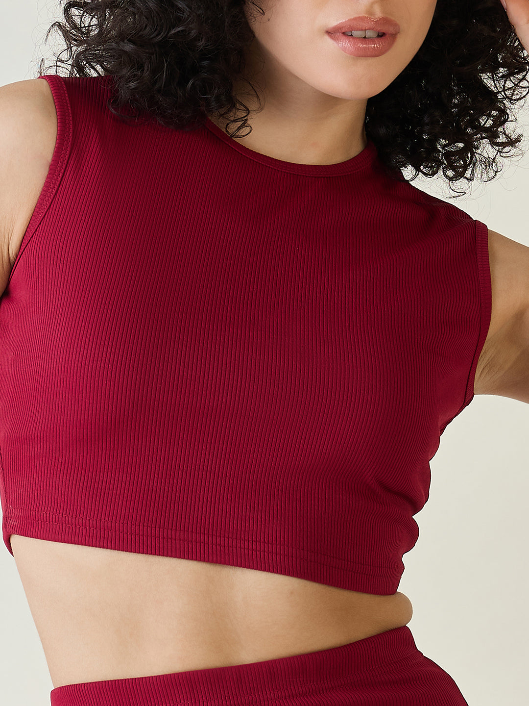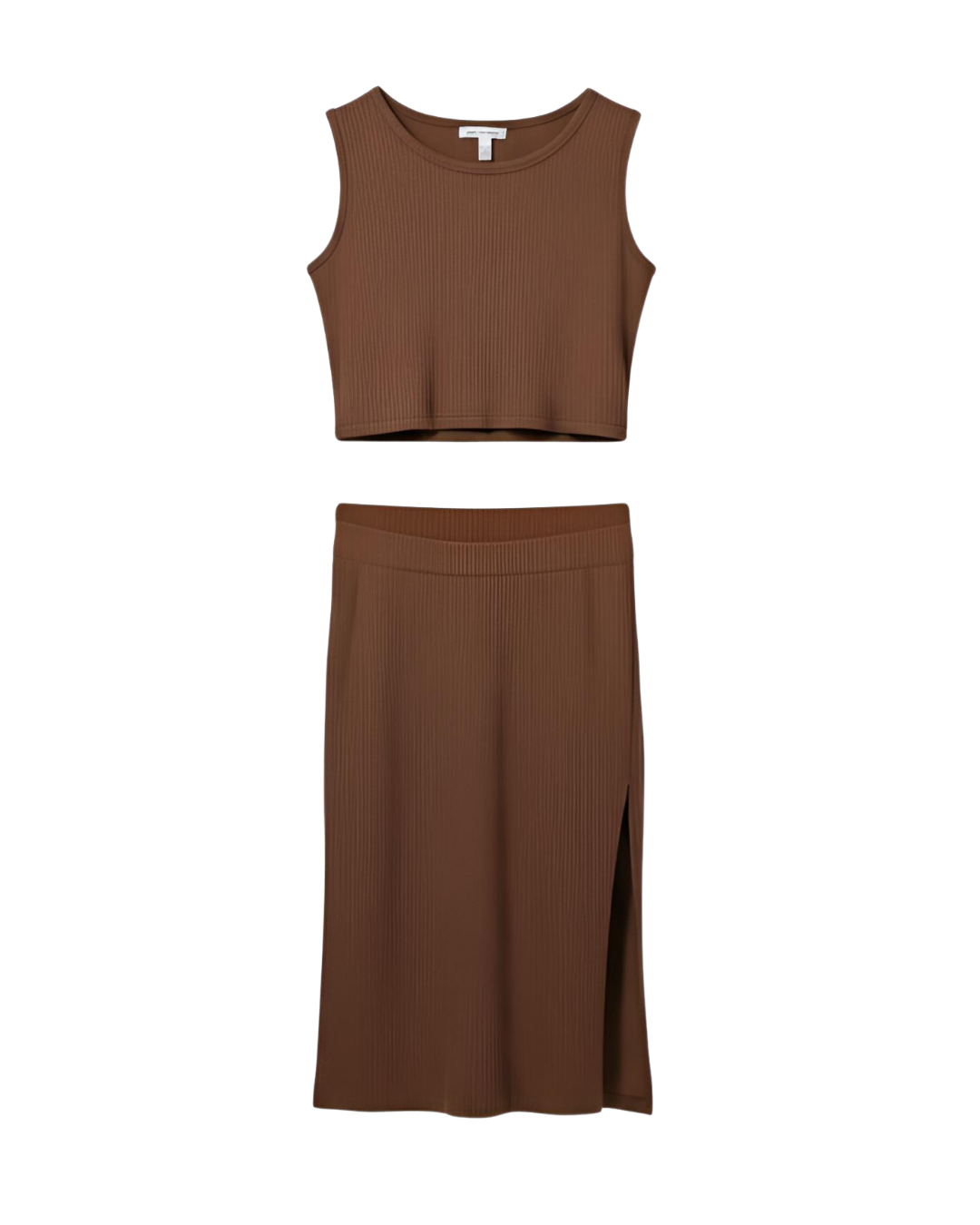 Achieve a sleek, cohesive look with this comfortable two-piece co-ord. The sleeveless crop top features a classic Round Neck and fine texture. It's perfectly matched with a midi pencil skirt that features a flattering High Waist with an elastic closure and a stylish side slit, making this set ideal for smart casual style.